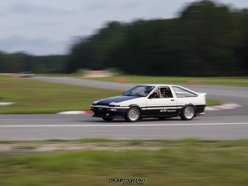 The variety of cars on track was pretty impressive, a newer Camaro SS with the 1LE package, a 600whp C7 Corvette, an Acura RSX Type-S, a Lotus Evora, a Ford Focus ST, and of course 86s that made it on track. One battle I enjoyed watching was Matt's built 16V 4AGE equipped AE86 going up against Tyler's 3SGE Beams swapped AE86, two very raw cars with drivers that enjoy taking their car on track, to autocross events, and the Tail of the Dragon, the sounds were epic. The turnout for 86 chassis fans was pretty decent, and the variety of styles and trim levels was impressive considering most people endured two to three-hour drives to get there, most without air conditioning in the Florida heat. For those who made it out, they were rewarded with a couple of parade laps with every 86 in attendance lining up afterward for an impromptu photoshoot on the track itself, if anything, this made my day.